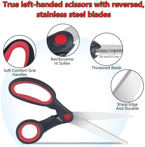 Eleckey Left Handed Scissors for Adults Kids Student All Purpose, 8″ Lefty Stainless Steel Scissors for Office Home School Sewing Fabric Craft Supplies, Red/Black (1 Pack)