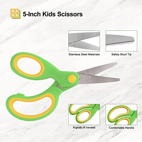 【KIDS SCISSORS】Right/Lift handed,scissors with safety blunt tip, ergonomic design, more comfortable grip fit. Kids safety scissors blade is durable stainless steel and cuts smoothly.Kid scissors used by children, students in the classroom, school, craft room .Toddler Scissors available in 3 colors kids love.