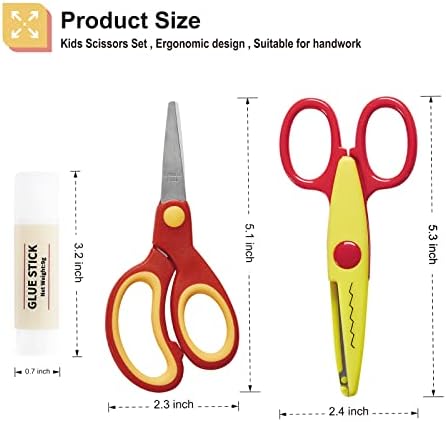 Kids Scissors Bulk Set,Small Scissors with Soft Touch Blunt Tip,5” Scissors for Kids,Craft Scissors Decorative Edge and PVP Glue Sticks for School Home Office