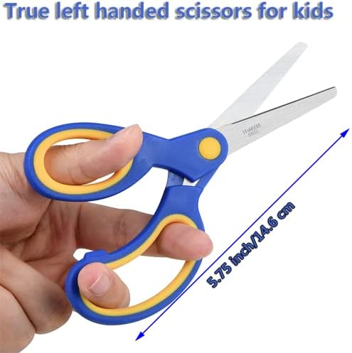 Left Handed Scissors Kids, Lefty Soft Touch Pointed School Student Scissors, 5.75″, Blunt, 2 Pack( Blue )